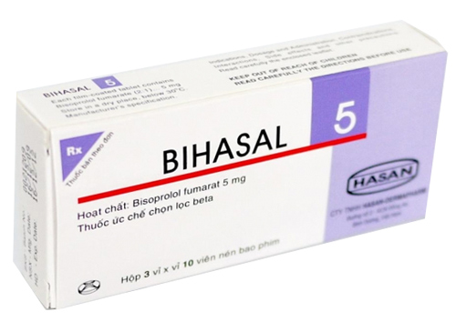 - Suy tim Không sử dụng các thuốc chẹn bêta cho bệnh nhân có triệu chứng của bệnh suy tim sung huyết. Tuy nhiên, ở một số bệnh nhân suy tim phải bù, nếu cần thiết sử dụng thuốc thì phải thật thận trọng. - Ngưng điều trị đột ngột: Ngưng điều trị đột ngột các thuốc chẹn bêta có thể làm trầm trọng thêm cơn đau thắt ngực, nhồi máu cơ tim hoặc loạn nhịp tâm thất ở những bệnh nhân mắc bệnh động mạch vành. Nên thận trọng khi ngưng điều trị nếu không có hướng dẫn của bác sĩ. - Bệnh co thắt phế quản: Vì tính chọn lọc bêta1 tương đối nên có thể dùng Bisoprolol với mức thận trọng cần thiết ở người bệnh co thắt phế quản không đáp ứng hoặc không dung nạp liệu pháp chống tăng huyết áp khác. Chính vì tính chọn lọc bêta1 không tuyệt đối nên có thể dùng Bisoprolol ở liều thấp nhất có thể được với liều khởi đầu là 2,5 mg/ ngày. Cũng có thể dùng đồng thời với một thuốc kích thích bêta2 (chất gây giãn phế quản). - Giải phẫu và gây mê: Nên ngưng sử dụng Bisoprolol ít nhất 48 giờ trước khi bệnh nhân được phẫu thuật. Nếu phải sử dụng thuốc trong suốt quá trình phẫu thuật, nên thận trọng đối với các tác nhân gây mê như ether, cyclopropan và trichloroethylen. Nếu quá liều, xử lý với atropin 1-2 mg I.V. - Tiểu đường và hạ glucose máu: Bisoprolol che dấu biểu hiện hạ đường huyết (đặc biệt là nhịp tim nhanh). Tuy nhiên, ở bệnh nhân tiểu đường được chỉ định insulin hoặc các thuốc hạ đường huyết dạng uống, nên sử dụng Bisoprolol một cách thận trọng. - Nhiễm độc tuyến giáp: Bisoprolol có thể che dấu các dấu hiệu lâm sàng cường tuyến giáp (như nhịp tim nhanh). Sự ngừng đột ngột thuốc chẹn bêta có thể thúc đẩy cơn nhiễm độc tuyến giáp. SỬ DỤNG CHO PHỤ NỮ CÓ THAI VÀ CHO CON BÚ - Không nên sử dụng thuốc cho phụ nữ đang có thai hoặc cho con bú. - Do có khả năng gây nhịp tim chậm, hạ huyết áp và hạ đường huyết trên trẻ sơ sinh, trước thời hạn sinh là 72 giờ, phải được chấm dứt điều trị với Bisoprolol. Nếu việc điều trị không thể chấm dứt được, trẻ sơ sinh phải được theo dõi trong vòng 48-72 giờ sau khi sinh. TÁC ĐỘNG CỦA THUỐC KHI LÁI XE, VẬN HÀNH MÁY MÓC Do thuốc có tác dụng hạ huyết áp nên tùy theo cá thể có thể ảnh hưởng đến khả năng lái xe và vận hành máy móc. Đặc biệt là tình trạng này thường xảy ra vào lúc đầu điều trị và khi có thay đổi sự dùng thuốc cũng như khi có sự tương tác với rượu.Những đối tượng cần lưu ý trước khi dùng thuốc Bihasal 5 : người già, phụ nữ mang thai, phụ nữ cho con bú, trẻ em dưới 15 tuổi, người suy gan, suy thận, người mẫn cảm dị ứng với bất cứ chất nào trong thành phần của thuốc… Hoặc đối tượng bị nhược cơ, hôn mê gan, viêm loét dạ dày