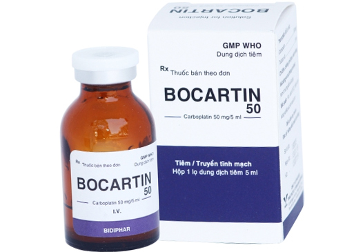 Liều dùng tiêm IV 400 mg/m2 da cơ thể. Có thể điều trị tiếp tục 1 liệu trình khác sau 4 tuần.Suy thận, suy tủy, chiếu tia: 300 - 320 mg/m2 da cơ thể.- Carboplatin thường được truyền tĩnh mạch trong 15 phút hoặc lâu hơn. Có thể truyền liên tục trong 24 giờ, hoặc tiêm màng bụng.- Có thể pha loãng thuốc với dung dịch Dextrose 5% hoặc NaCl 0,9% để có nồng độ 0,5 mg/ ml.- Phải thận trọng khi pha thuốc và khi thao tác với thuốc, không được để thuốc dây bẩn lên da. Thuốc bắn vào mắt có thể bị mù.- Phải tiêm thuốc vào trong mạch máu, nếu tiêm ra ngoài mạch có thể bị hoại tử.- Liều dùng của carboplatin phải dựa vào đáp ứng lâm sàng, sự dung nạp thuốc và độc tính, sao cho có kết quả điều trị tối ưu với tác dụng có hại ít nhất.- Liều khởi đầu phải dựa vào diện tích bề mặt cơ thể, và phải tính toán dựa vào chức năng thận. Liều thường dùng 300-450mg/m2- Hoặc tính tổng liều theo công thức sau (công thức Chatelut):Tổng liều (mg) = AUC đích (mg/ml/phút) x Cl carboplatin (ml/phút).Trong đó, tỷ lệ lọc cầu thận được tính như sau:+ Đối với nam: Cl carboplatin (ml/phút) = (0,134 x p) + 218 x P (1 - 0,00457 x T) : Cr+ Đối với nữ: Cl carboplatin (ml/phút) = (0,134 x P) + 0,686 (218 x P x (1 - 0,00457 x T)) : CrTrong đó: P = cân nặng (kg) T = tuổi bệnh nhân (năm) Cr = nồng độ creatinin huyết thanh (micromol/lít)AUC đích điển hình từ 5 - 7 mg/ml/phút tùy thuộc vào điều trị trước đó và các thuốc dùng phối hợp hoặc tia xạ.- Tổng liều cao có thể dùng tới 1.600 mg/m2 chia liều trong vài ngày, được sử dụng trong hóa trị liệu liều cao kết hợp với truyền tế bào gốc.- Dùng liều lặp lại phải sau ít nhất 4 tuần trở lên. Chỉ dùng khi các thông số huyết học đã phục hồi ở mức chấp nhận được. Phải chuẩn bị sẵn sàng các phương tiện xử lí các tai biến có thể xảy ra.Ung thư buồng trứng:- Ung thư buồng trứng tiến triển (giai đoạn III và IV): liều khởi đầu carboplatin cho người lớn 300 mg/m2. Liều dùng lần sau phải sau 4 tuần hoặc lâu hơn nếu độc tính trên máu phục hồi chậm và điều chỉnh liều tùy theo mức giảm huyết cầu trong lần điều trị trước. Tổng 1 đợt điều trị là 6 lần.- Ung thư buồng trứng tái phát: liều khởi đầu là 360 mg/ m2, 4 tuần 1 lần.- Điều chỉnh liều tùy theo mức độ giảm huyết cầu của lần dùng trước:+ Nếu độc tính trên máu không đáng kể (tiểu cầu trên 100.000/mm3 và bạch cầu trung tính trên 2.000/mm3) dù dùng carboplatin đơn độc hay phối hợp thì cũng nên tăng liều 25%.+ Nếu độc tính trên máu ở mức nhẹ đến vừa (tiểu cầu 50.000 - 100.000/mm3 và bạch cầu trung tính 500 - 2.000/mm3) liều dùng lần sau bằng liều dùng lần trước.+ Nếu độc tính trên máu ở mức vừa đến nặng (tiểu cầu dưới 50.000/mm3 và bạch cầu trung tính dưới 500/mm3) thì giảm liều lần sau đi 25%.+ Nếu sau 2 lần giảm liều chỉ còn bằng 50% liều ban đầu mà các huyết cầu vẫn giảm từ vừa đến nặng thì có thể thay carboplatin bằng cisplatin vì cisplatin có độc tính trên tủy xương thấp hơn.- Liều carboplatin dùng điều trị các ung thư khác cũng tương tự như ung thư buồng trứng. - Phải giảm liều cho người suy thận:Độ thanh thải Creatini ( ml/phút) Liều khởi đầu(mg/m2)41-59 25016-40 200Cần áp dụng chính xác liều dùng thuốc Bocartin 50 ghi trên bao bì, tờ hướng dẫn sử dụng thuốc hoặc chỉ dẫn của bác sĩ, dược sĩ. Không tự ý tính toán, áp dụng hoặc thay đổi liều dùng.