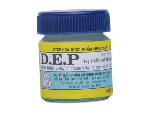 Thuốc D.E.P thành phần Mỗi 10g chứa Diethyl phtalat 9,5g dưới dạng Thuốc mỡ bôi daChỉ định