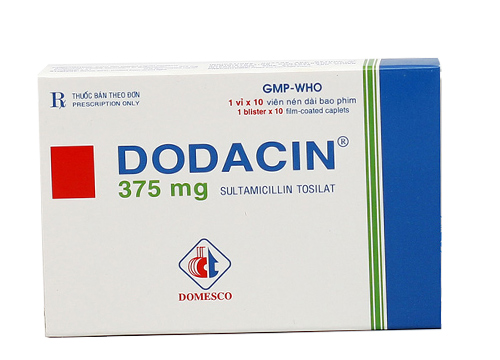 - Nhiễm khuẩn đường hô hấp trên & dưới. - Viêm xoang, viêm tai giữa & viêm amiđan. - Viêm phổi, viêm phế quản. - Nhiễm khuẩn đường tiểu & viêm đài bể thận. - Nhiễm khuẩn huyết & viêm màng não. - Nhiễm khuẩn da, mô mềm & xương khớp. - Bệnh lậu.Dược lực học:Sultamicilin là một ester đôi, trong đó ampicillin và chất ức chế bêta-lactamase sulbactam được gắn qua nhóm methylen. Về mặt hóa học, sultamicilin là ester sulphon oxymethylpenicillinat của ampicillin và có trọng lượng phân tử là 594,7.Ở người trong quá trình hấp thu sultamicillin sẽ thủy phân cho ra sulbactam và ampicillin tỷ lệ phân tử 1:1 lưu hành trong hệ tuần hoàn. Sinh khả dụng khi sử dụng đường uống đạt tới 80% so với dùng đường tĩnh mạch liều tương đương của sulbactam và ampicillin.Những nghiên cứu sinh hóa học với các hệ vi khuẩn không tế bào (cell-free bacterial systems) đã chứng minh sulbactam có khả năng làm bất hoạt không hồi phục phần lớn các enzym bêta-lactamase quan trọng của các vi khuẩn kháng penicillin. Sulbactam có hoạt tính kháng khuẩn đáng kể đối với Neisseriaceae, Acinetobacter calcoaceticus, Bacteroides spp., Branhamella catarrhalis vàPseudomonas cepacia. Những nghiên cứu vi sinh học trên các dòng vi khuẩn kháng thuốc xác nhận sulbactam có khả năng bảo vệ penicillin và cephalosporin không bị vi khuẩn phá hủy và có tác dụng hiệp đồng rõ rệt với penicillin và cephalosporin. Do sulbactam cũng gắn với một số protein gắn kết penicillin, cho nên đối với một số dòng vi khuẩn nhạy cảm, sử dụng kết hợp sulbactam-ampicillin sẽ hiệu quả hơn là chỉ dùng một loại bêta-lactam.Thành phần kết hợp với sulbactam trong sultamicillin là ampicillin có tính năng diệt những dòng vi khuẩn nhạy với thuốc bằng cách ức chế sinh tổng hợp mucopeptid của vách tế bào.Sultamicillin có phổ kháng khuẩn rộng đối với cả vi khuẩn Gram dương và Gram âm, gồm có Staphylococcus aureus và S. epidermidis (gồm cả những vi khuẩn đề kháng penicillin và một số vi khuẩn đề kháng methicillin), Streptococcus pneumoniae, Streptococcus faecalis và các chủng Streptococcus khác, Haemophilus influenzae và parainfluenzae (cả hai dòng vi khuẩn sinh bêta-lactamase và không sinh bêta-lactamase), Branhamella catarrhalis, vi khuẩn yếm khí gồm cả Bacteroides fragilis và những vi khuẩn cùng họ, Escherichia coli, Klebsiella, Proteus gồm cả hai loại indol (+) và indol (-), Morganella morganii, Citrobacter, Enterobacter, Neisseria meningitidis và Neisseria gonorrhoeae.Dược động họcUống sultamicillin sau khi ăn không làm ảnh hưởng sinh khả dụng toàn thân. Nồng độ đỉnh trong huyết tương của ampicillin sau khi uống sultamicillin đạt cao gấp hai lần so với dùng liều tương đương ampicillin uống. Ở người tình nguyện khỏe mạnh, thời gian bán thải (elimination half-life) của sulbactam là 0,75 giờ và của ampicillin là 1 giờ, với ưu điểm là có từ 50% tới 75% lượng thuốc thải trừ nguyên vẹn qua nước tiểu. Thời gian bán thải tăng lên ở người già và người bị suy thận. Probenecid làm giảm khả năng bài tiết qua ống thận của cả ampicillin và sulbactam. Do đó, sử dụng đồng thời probenecid và sultamicillin làm tăng và kéo dài nồng độ ampicillin và sulbactam trong máu.Sulbactam/ampicillin khuếch tán dễ dàng vào hầu hết các mô và dịch cơ thể. Thuốc ít thâm nhập vào não và dịch não tủy trừ khi có viêm màng não. Nồng độ của sulbactam và ampicillin cao trong máu sau khi tiêm tĩnh mạch hoặc tiêm bắp và cả sulbactam lẫn ampicillin đều có thời gian bán hủy khoảng một giờ. Hầu hết sulbactam/ampicillin được thải trừ nguyên vẹn qua nước tiểu.Tuân thủ sử dụng thuốc theo đúng chỉ định(công dụng, chức năng cho đối tượng nào) ghi trên tờ hướng dẫn sử dụng thuốc Dodacin 375mg hoặc tờ kê đơn thuốc của bác sĩ.