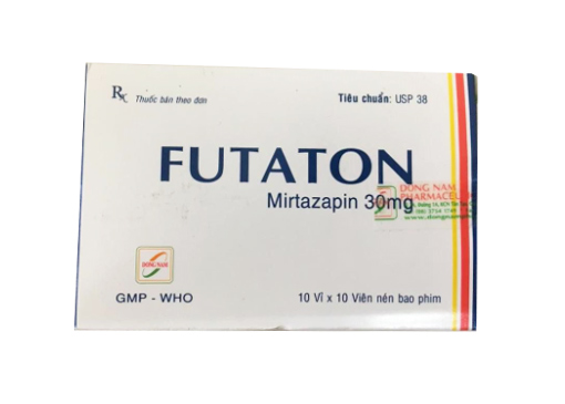 Thuốc Futaton là Thuốc hướng tâm thần - Số Visa thuốc / Số đăng ký / SĐK: VD-24456-16 được sản xuất bởi Công ty cổ phần SX - TM Dược phẩm Đông Nam - VIỆT NAM. Thuốc Futaton chứa thành phần Mirtazapin 30 mg và được đóng gói dưới dạng Viên nén bao phim