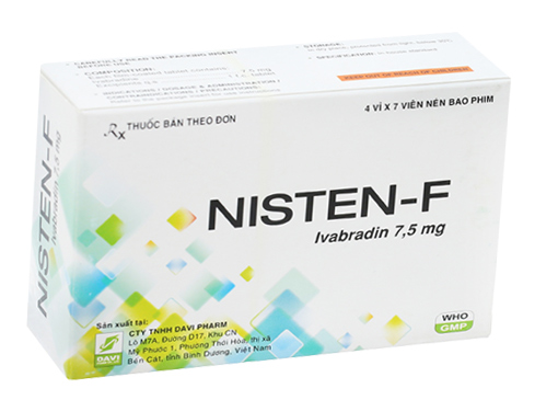 Thuốc Nisten-F thành phần Ivabradin (tương đương ivabradin HCl 8,1mg) 7,5mg dưới dạng Viên nén bao phimChỉ định