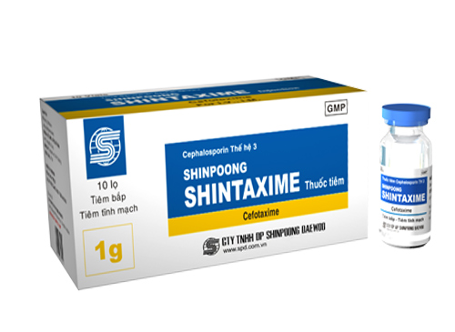 Thuốc Shinpoong Shintaxime thành phần Cefotaxim (dưới dạng Cefotaxim natri) 1gam dưới dạng Bột pha tiêm