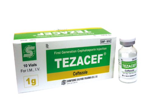 Thuốc Tezacef là Thuốc trị ký sinh trùng chống nhiễm khuẩn kháng virus kháng nấm - Số Visa thuốc / Số đăng ký / SĐK: VD-24537-16 được sản xuất bởi Công ty Dược Phẩm ShinPoong Daewoo Việt Nam - VIỆT NAM. Thuốc Tezacef chứa thành phần Ceftezol (dưới dạng Ceftezol natri) 1 g và được đóng gói dưới dạng Bột pha tiêm